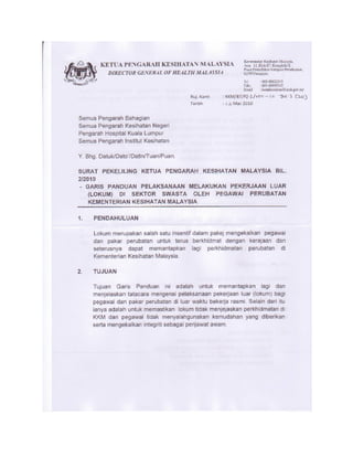 03-88895245 Rujukan Tarikh Sem ua SetiausahaPengarah Bahagian Semua Pengarah Kesihatan Negeri Semua Pengarah lnstitut Semua Pengarah HosPital Kementerian Kesi hatan MalaYsia. PEKELILING KETUA PENGARAH KESIHATAN - 152008 Penggunaan Nama Penuh Nombor Pendaftaran dengan MPM oleh Pegawai Perubatan 1 No.